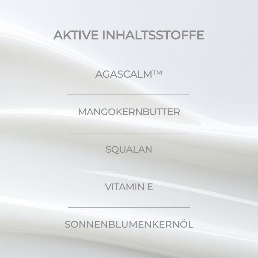 Agascalm™ wirkt gezielt auf stressbedingte Hautreaktionen und reduziert die Aktivität der wichtigsten Auslöser von Hautentzündungen. So stellt es das Gleichgewicht und die Widerstandsfähigkeit der Haut wieder her und hilft dabei: