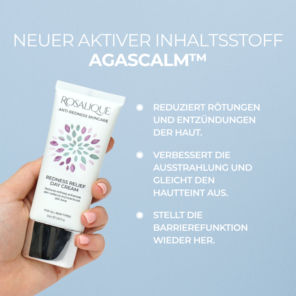 Agascalm™ ist ein klinisch getesteter pflanzlicher Wirkstoff, der aus Agastache Mexicana gewonnen wird, einer Pflanze, die traditionell in der mexikanischen Kräutermedizin verwendet wird. Agascalm™ ist für seine starken entzündungshemmenden Eigenschaften bekannt und hilft, die Anzeichen von Stress auf der Haut sichtbar zu reduzieren, was es zu einem besonders wertvollen Inhaltsstoff für empfindliche und zu Rosazea neigende Haut macht.